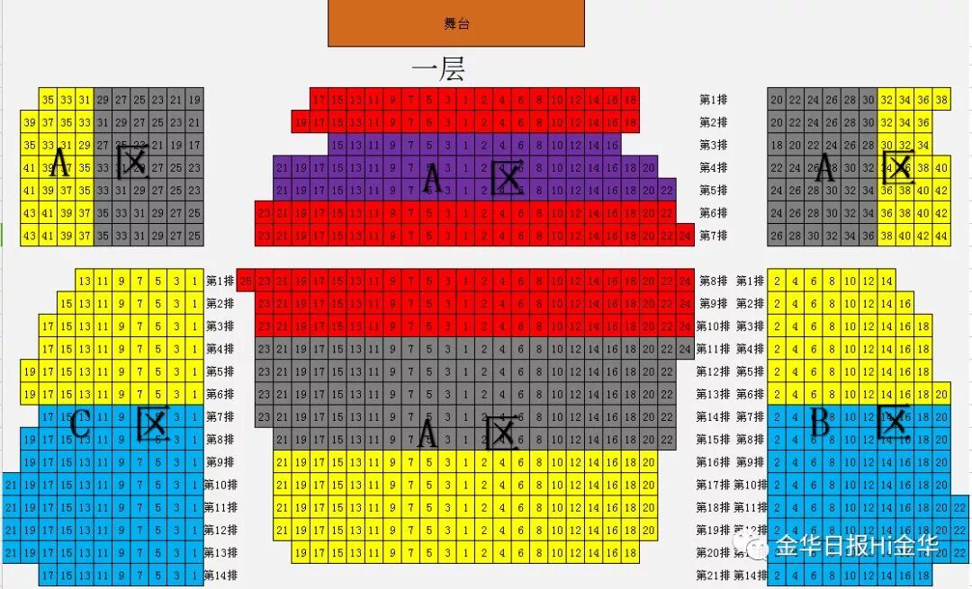 大型舞剧《天鹅湖》演出票价:580(VIP)、480、380、280、180、100 俄罗斯《天鹅湖》金华站座位规划图
